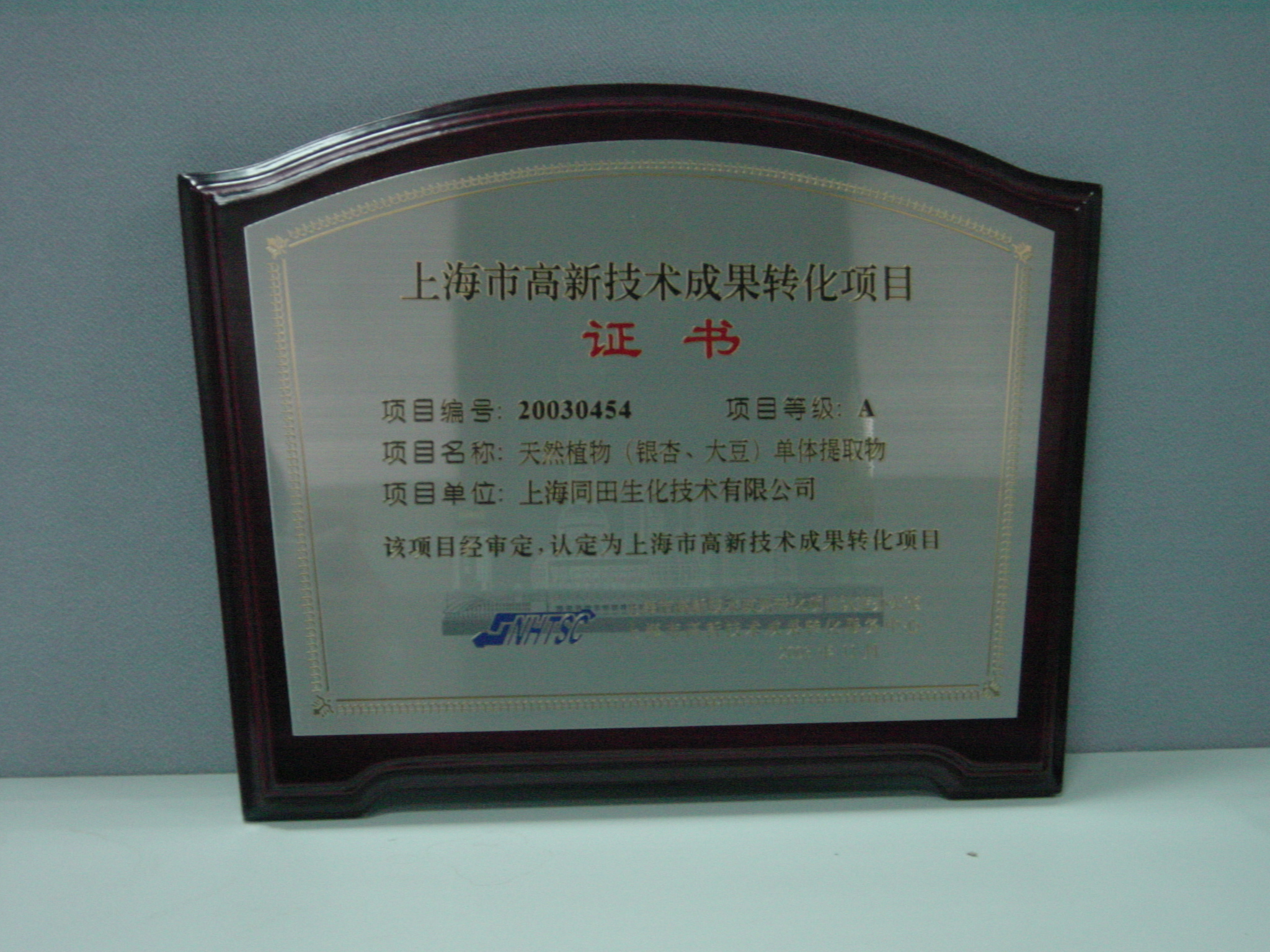 高新技術成果轉化項目證書